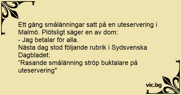 Ett gäng smålänningar satt på en uteservering i Malmö. Plötsligt säger en av dom: