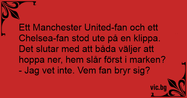 Ett Manchester United-fаn och ett Chelsea-fаn stod ute på en klippa. Det slutar med att båda väljer att hoppa ner, hem slår först i marken?