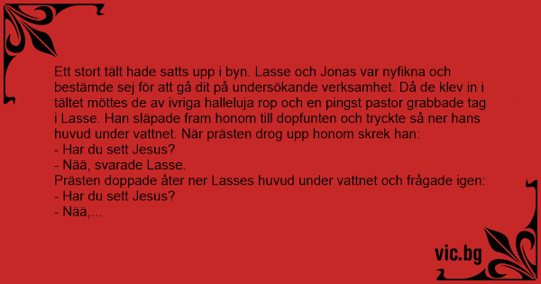 När prästen för tredje gången doppade Lasses huvud och igen frågade om han sett Jesus så svarade Lasse: