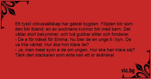 - Ja, men mest synn e de om ungen. Hur ska han klara sej? Tänk den stackaren som ente kan ett or skånska!