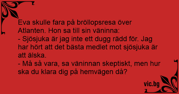 Eva skulle fara på bröllopsresa över Atlanten. Hon sa till sin väninna: