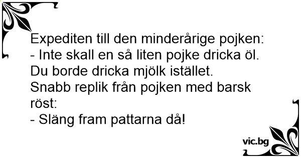 - Inte skall en så liten pojke dricka öl. Du borde dricka mjölk istället.
