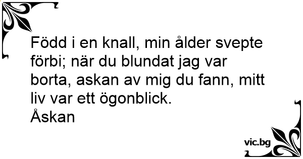 Född i en knall, min ålder svepte förbi; när du blundat jag var borta, askan av mig du fann, mitt liv var ett ögonblick.