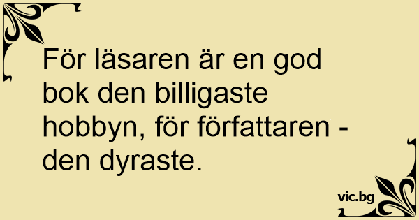 För läsaren är en god bok den billigaste hobbyn, för författaren - den dyraste.