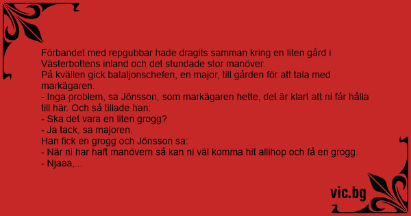 - Jaså, sa Jönsson. Ja, då blir det förstås problem med att groggvirket kanske inte räcker....