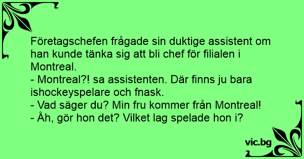- Montreal?! sa assistenten. Där finns ju bara ishockeyspelare och fnask.