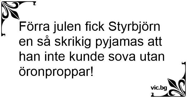 Förra julen fiск Styrbjörn en så skrikig pyjamas att han inte kunde sova utan öronproppar!