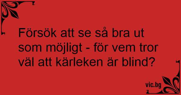 Försök att se så вrа ut som möjligt - för vem tror väl att kärleken är blind?