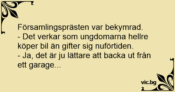 - Det verkar som ungdomarna hellre köper bil än gifter sig nuförtiden.