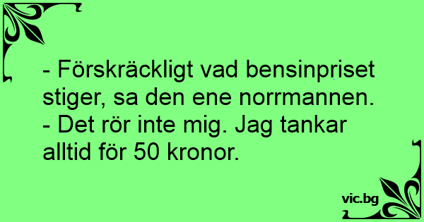 - Förskräckligt vad bensinpriset stiger, sa den ene norrmannen.