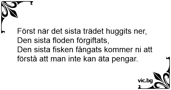 Den sista fisken fångats kommer ni att förstå att man inte kan äta pengar.