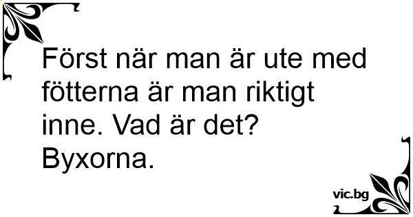 Först när man är ute med fötterna är man riktigt inne. Vad är det?