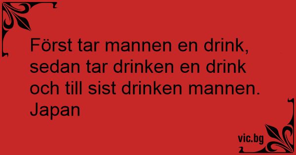 Först tar mannen en drink, sedan tar drinken en drink och till sist drinken mannen.