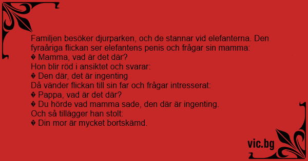 Familjen besöker djurparken, och de stannar vid elefanterna. Den fyraåriga flickan ser elefantens реnis och frågar sin mamma: