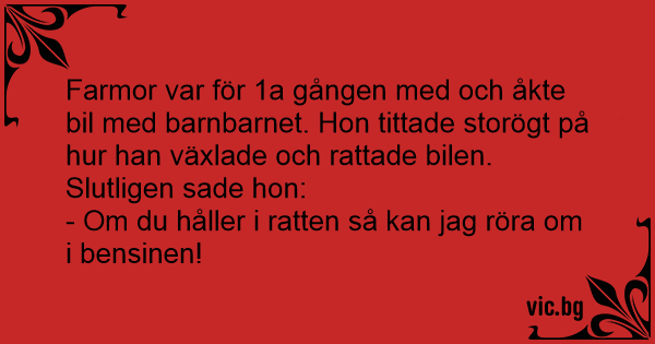 Farmor var för 1a gången med och åkte bil med barnbarnet. Hon tittade storögt på hur han växlade och rattade bilen.