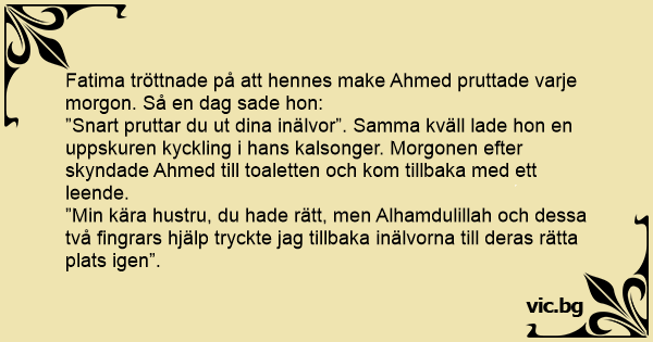 Fatima tröttnade på att hennes make Ahmed pruttade varje morgon. Så en dag sade hon: