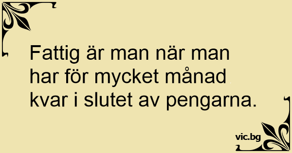 Fattig är man när man har för mycket månad kvar i slutet av pengarna.