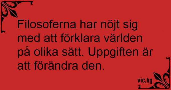Filosoferna har nöjt sig med att förklara världen på olika sätt. Uppgiften är att förändra den.