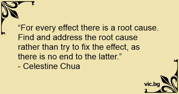 “For every effect there is a root cause. Find and address the root cause rather than try to fix the effect, as there is no end to the latter.”