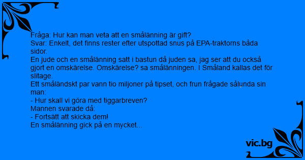 Fråga: Hur kan man veta att en smålänning är gift?
