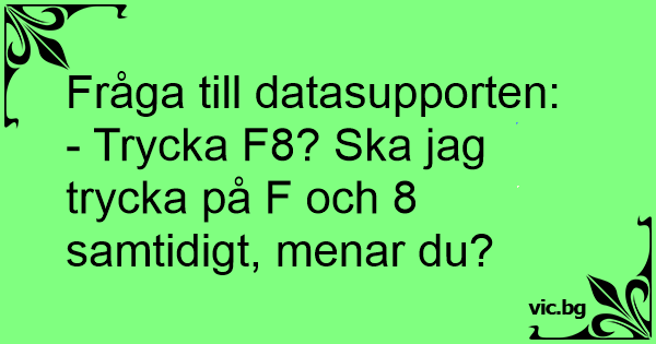 - Trycka F8? Ska jag trycka på F och 8 samtidigt, menar du?