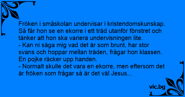 - Normalt skulle det vara en ekorre, men eftersom det är fröken som frågar så är det väl Jesus...