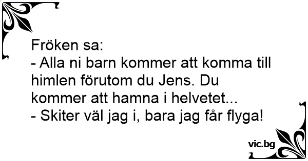 - Alla ni barn kommer att komma till himlen förutom du Jens. Du kommer att hamna i helvetet...
