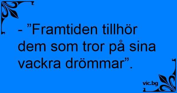 - ”Framtiden tillhör dem som tror på sina vackra drömmar”.