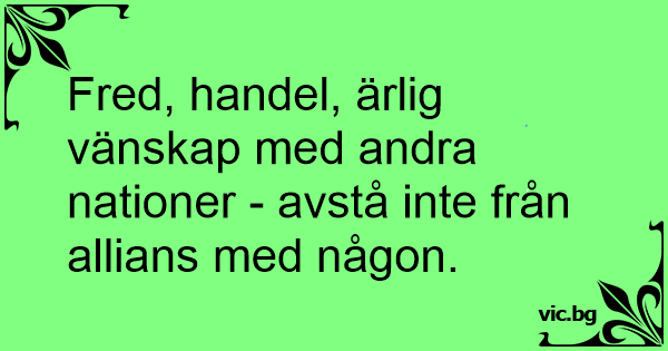 Fred, handel, ärlig vänskap med andra nationer - avstå inte från allians med någon.