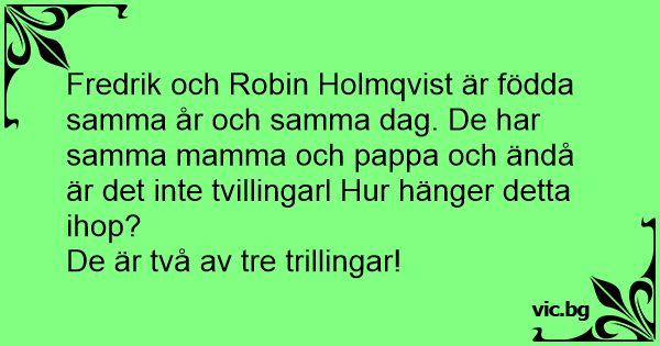 Fredrik och Robin Holmqvist är födda samma år och samma dag. De har samma mamma och pappa och ändå är det inte tvillingarl Hur hänger detta ihop?
