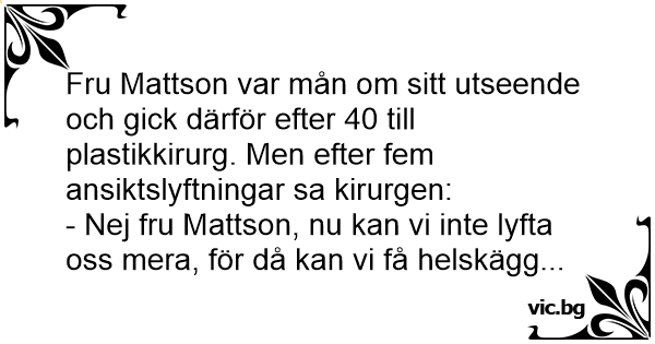 Fru Mattson var mån om sitt utseende och gick därför efter 40 till plastikkirurg. Men efter fem ansiktslyftningar sa kirurgen: