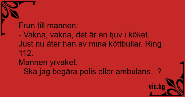- Събуди се Киро, събуди се, в кухнята има крадец. В момента ми яде кюфтетата. Обади се на 112. Киро, все още замаян: - Полиция или линейка да искам...?