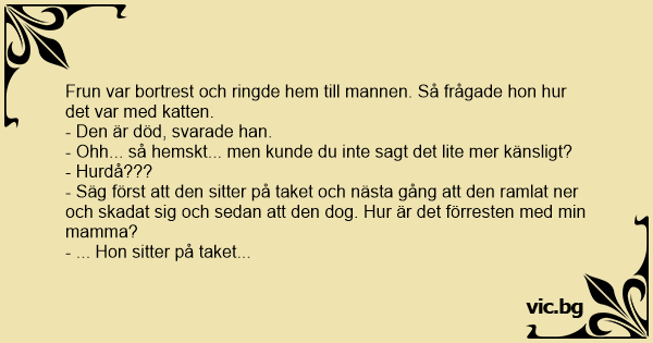 Frun var bortrest och ringde hem till mannen. Så frågade hon hur det var med katten.