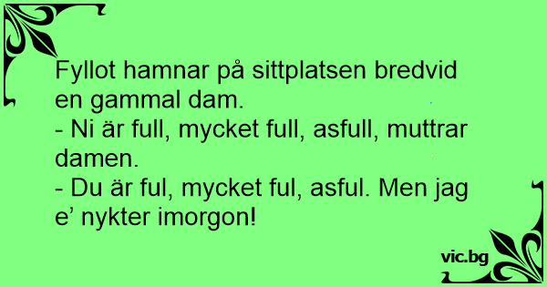 - Ni är full, mycket full, asfull, muttrar damen.