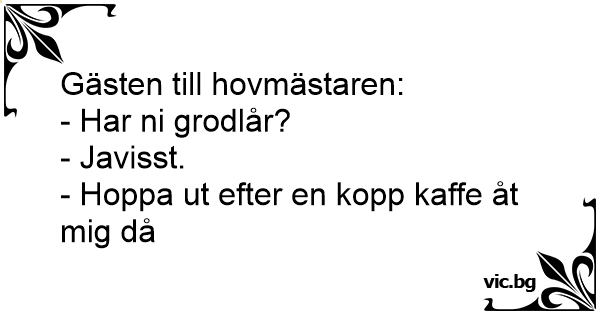 - Kelner, har du froskelår? - Ja. - Flott, hopper du over disken og henter en kopp kaffe til meg?