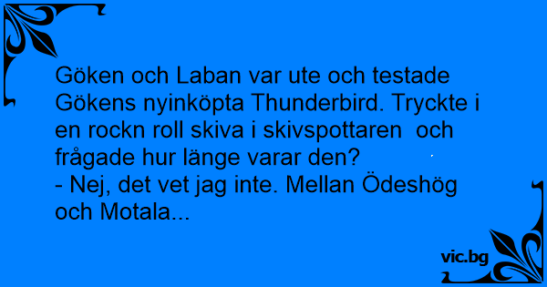 Göken och Laban var ute och testade Gökens nyinköpta Thunderbird. Tryckte i en rockn roll skiva i skivspottaren och frågade hur länge varar den?