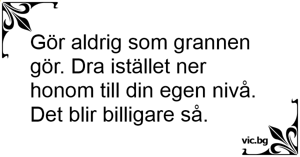 Gör aldrig som grannen gör. Dra istället ner honom till din egen nivå. Det blir billigare så.