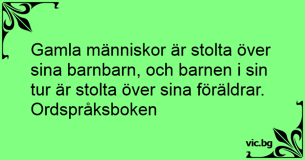 Gamla människor är stolta över sina barnbarn, och barnen i sin tur är stolta över sina föräldrar.