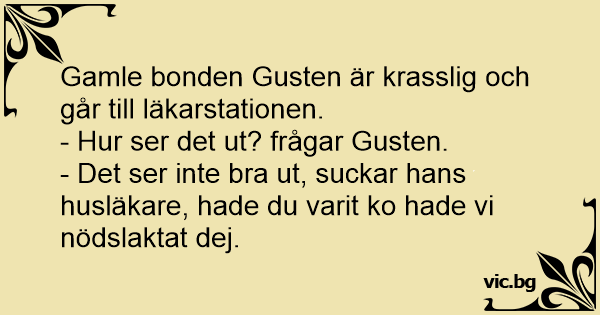 Gamle bonden Gusten är krasslig och går till läkarstationen.