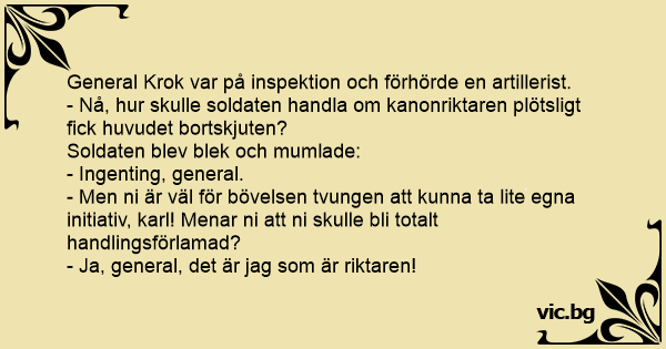 - Nå, hur skulle soldaten handla om kanonriktaren plötsligt fiск huvudet bortskjuten?