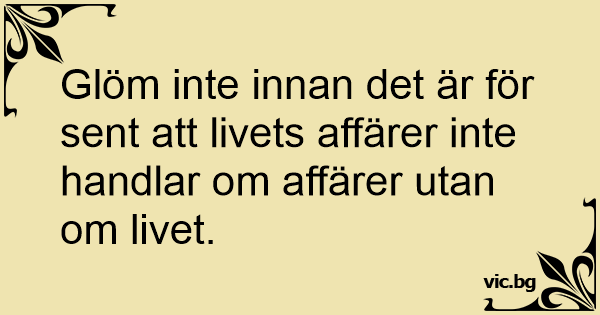 Glöm inte innan det är för sent att livets affärer inte handlar om affärer utan om livet.