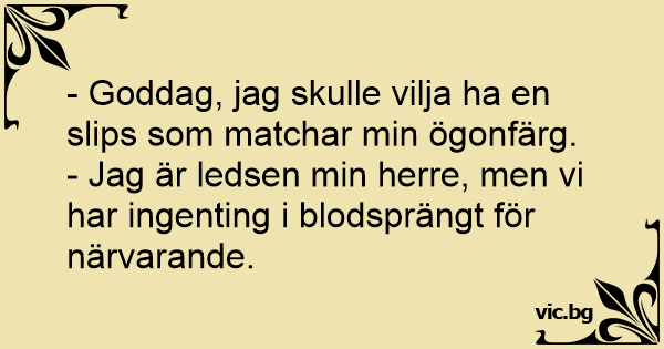 - Goddag, jag skulle vilja ha en slips som matchar min ögonfärg.