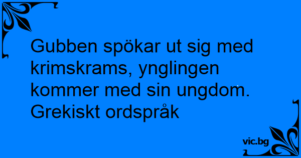 Gubben spökar ut sig med krimskrams, ynglingen kommer med sin ungdom.