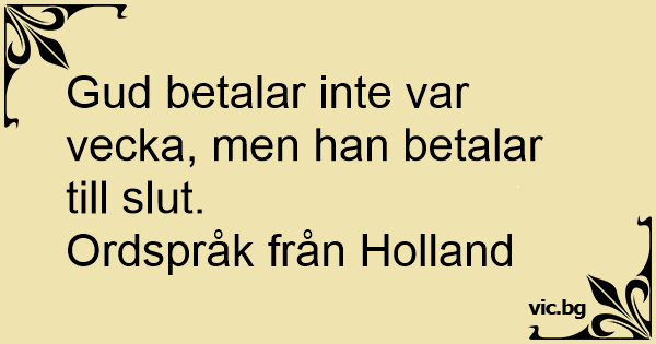 Gud betalar inte var vecka, men han betalar till sluт.<br />Ordspråk från Holland