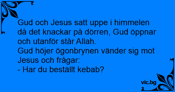 Gud och Jesus satt uppe i himmelen då det knackar på dörren, Gud öppnar och utanför står Allah.