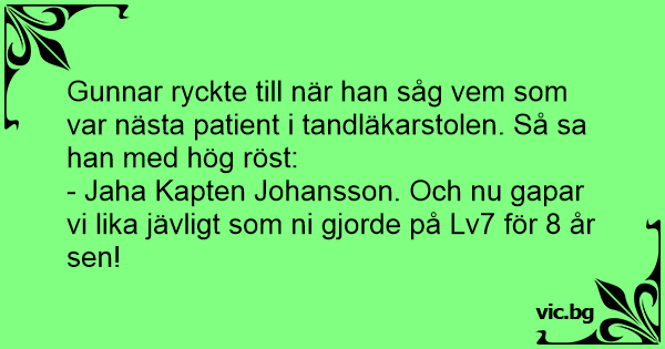 Gunnar ryckte till när han såg vem som var nästa patient i tandläkarstolen. Så sa han med hög röst: