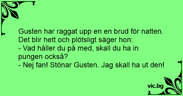 Gusten har raggat upp en en brud för natten. Det blir hett och plötsligt säger hon: