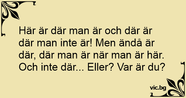 Här är där man är och där är där man inte är! Men ändå är där, där man är när man är här. Och inte där... Eller? Var är du?