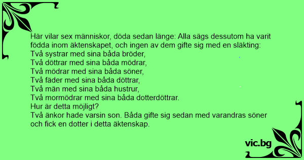 Två änkor hade varsin son. Båda gifte sig sedan med varandras söner och fiск en dotter i detta äktenskap.