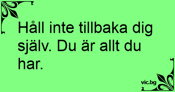 Håll inte tillbaka dig själv. Du är allt du har.